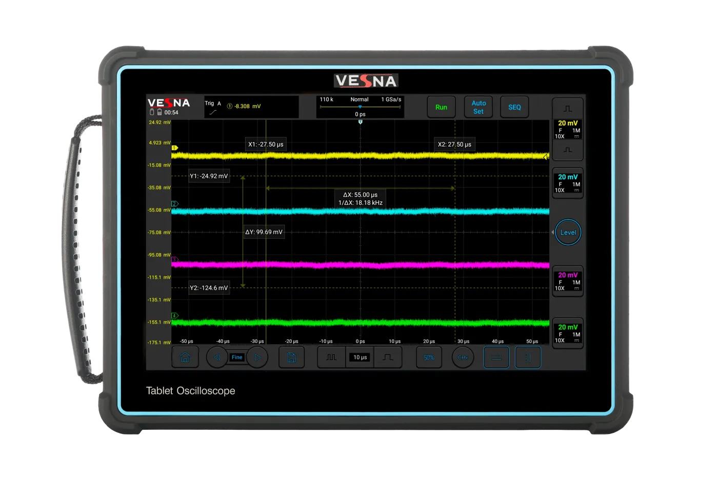 Автомобильный диагностический осциллограф серии AVU2 — это специализированный инструмент, предназначенный для технического обслуживания и диагностики автомобилей. Он оснащен большим 10,1-дюймовым экраном высокой четкости и встроенной литиевой батареей, работающей более пяти часов.